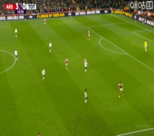 第36分钟,接梅里诺传球后,特罗萨德潇洒转身射门得手,阿森纳1-0领先!